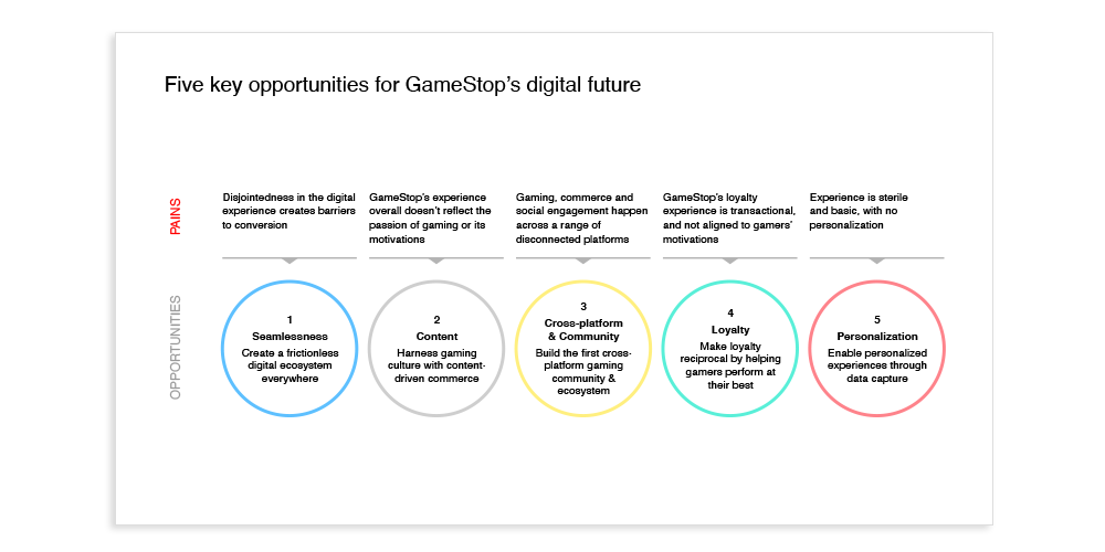 Our analysis of the current experience found some key areas of friction in the current experience like complex user flows, heavy reliance on in-person transactions, lack of status transparency, and an absence of personalization. And most importantly, there is not enough focus on digital fulfillment which is of increasing urgency as physical games are being phased out and game developers are owning a growing market share through direct downloads.